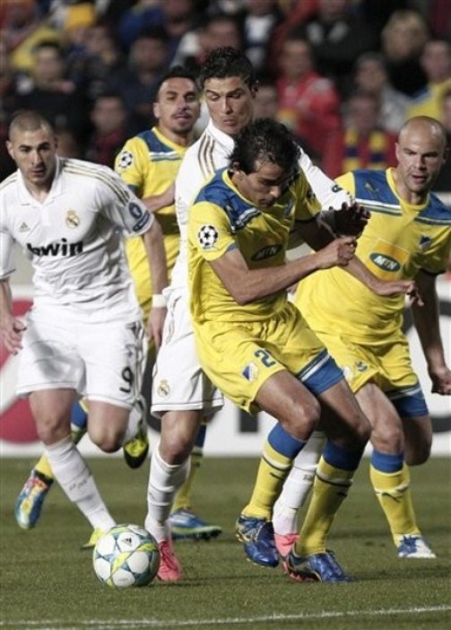 Thế nhưng APOEL đã chơi hết mình và không hề tỏ ra đuối trước một đối thủ lớn khiến cho Real gặp phải nhiều khó khăn ở hiệp 1