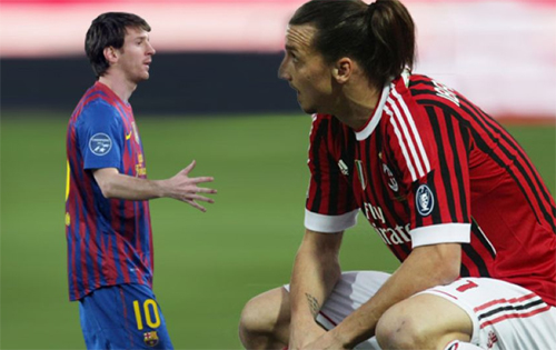 Trên hàng công, siêu sao Lionel Messi của Barca lọt thỏm trước gã khổng lồ và cũng là đồng đội cũ của anh, Ibrahimovic. Với 1,69m, Messi chỉ đứng đến vai của chân sút Thụy Điển